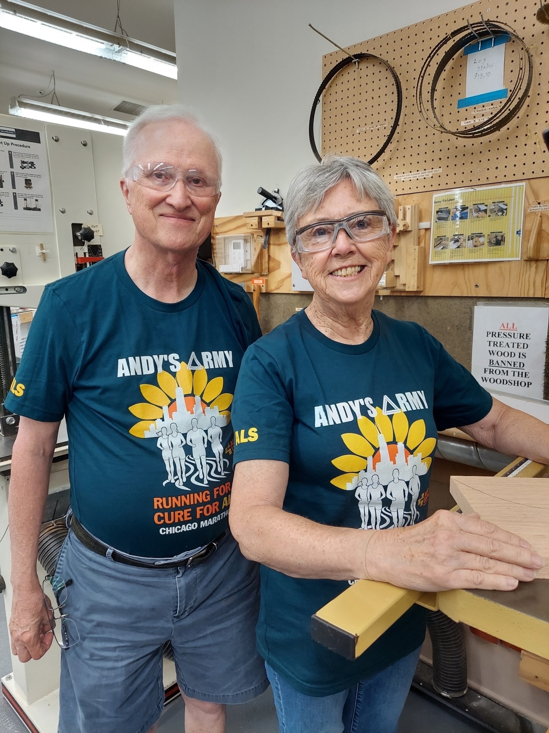Today’s photo is of Phil and Karen in the Sun City wood shop supporting Andy’s Army.