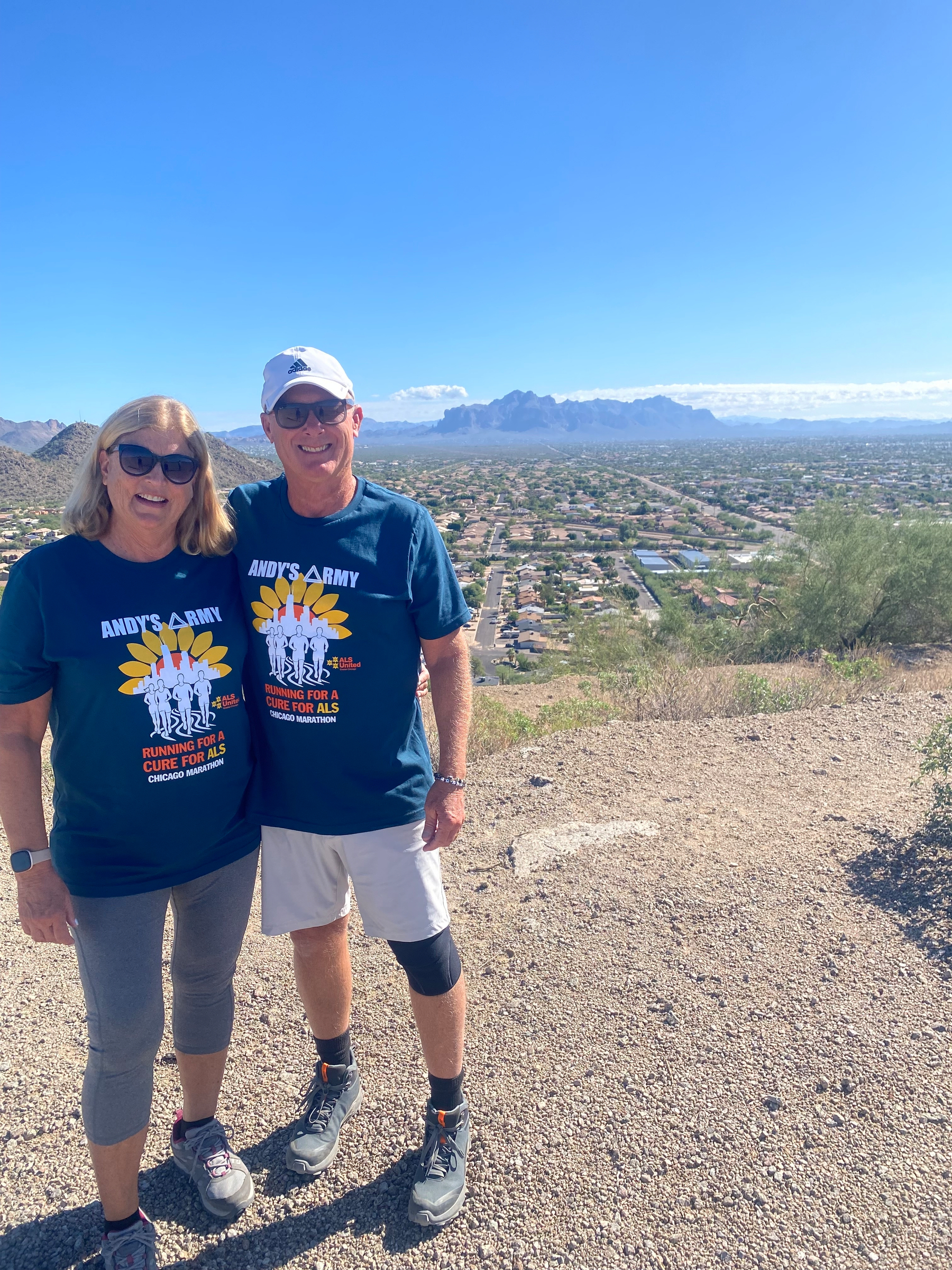 Mike and Beth tooling around in AZ sporting their Andy’s Army shirts.