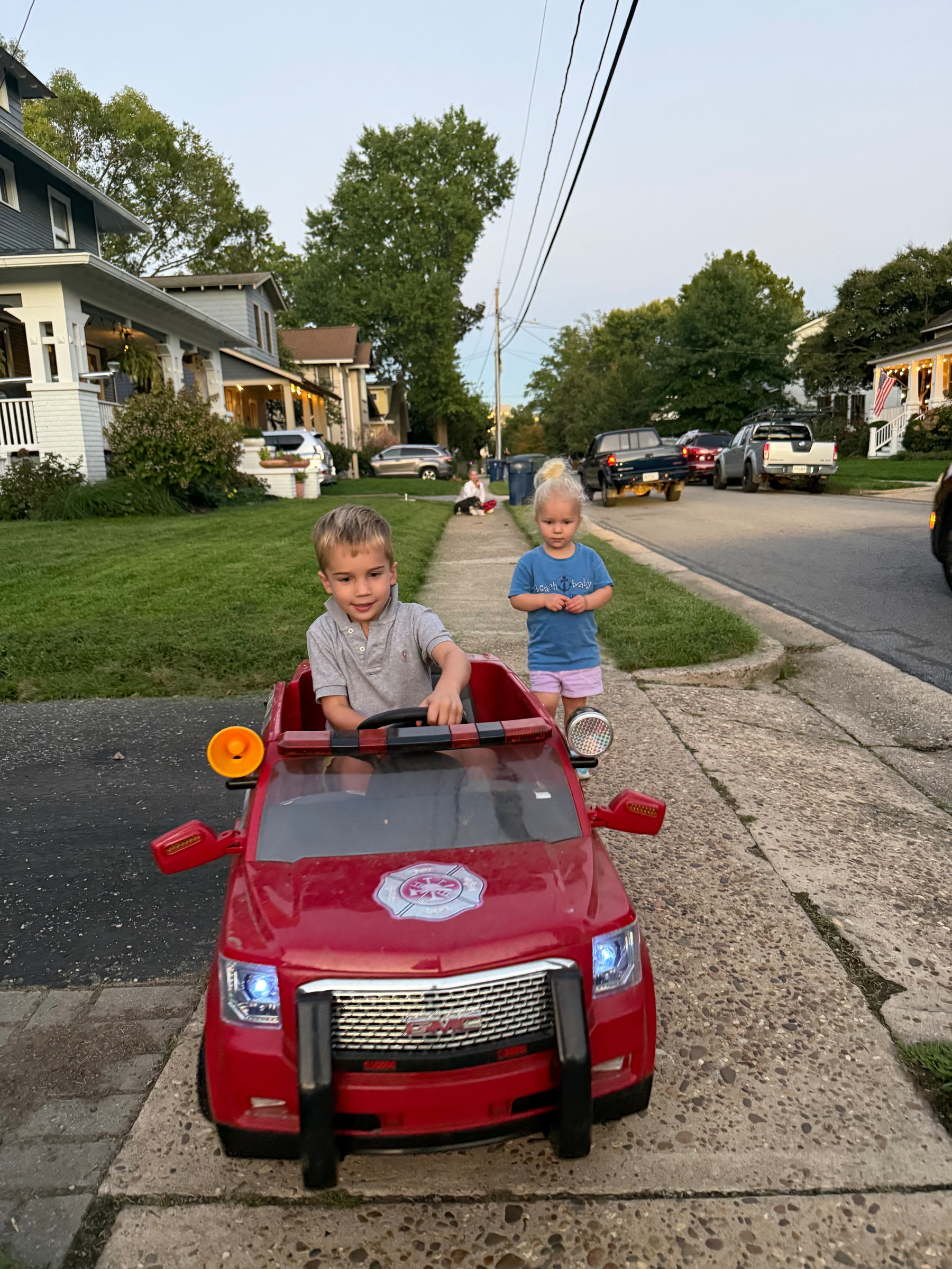 Photos of Wyatt and Coco learning to drive.