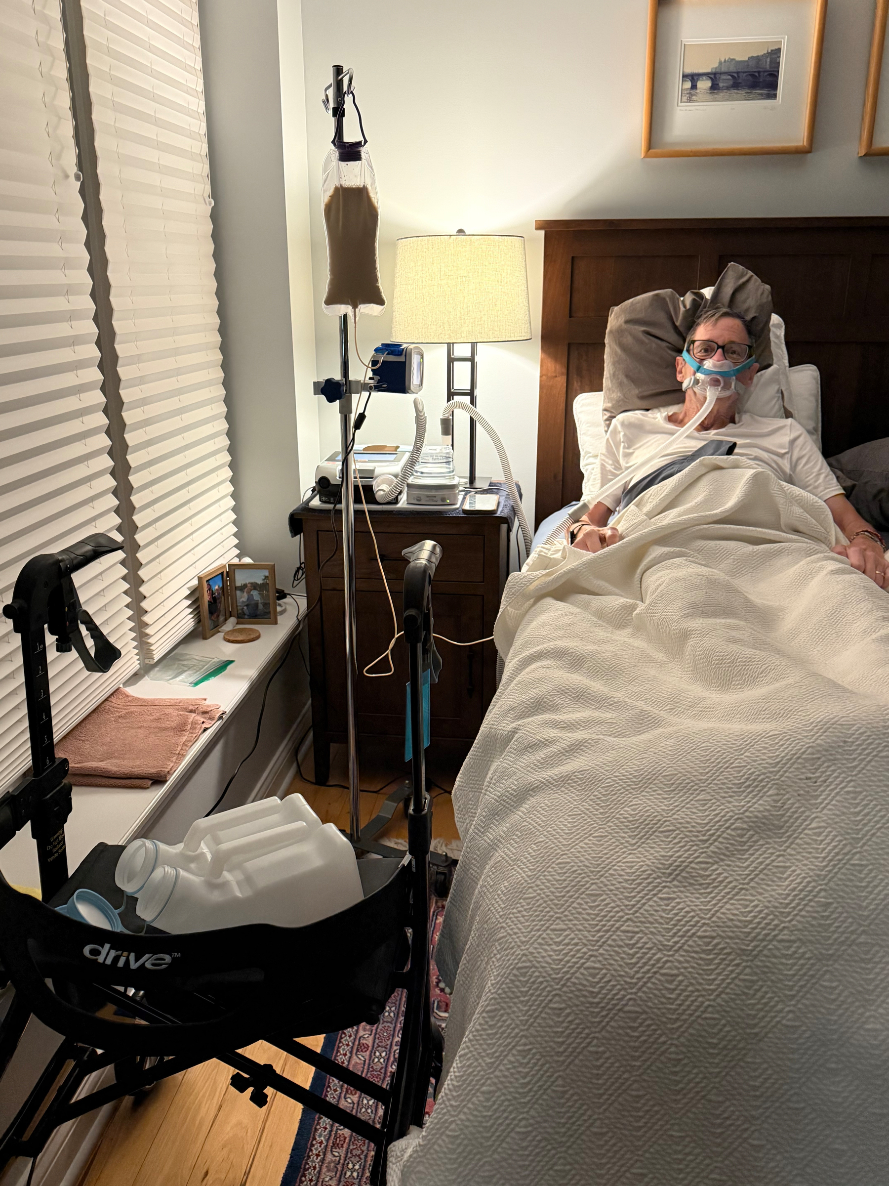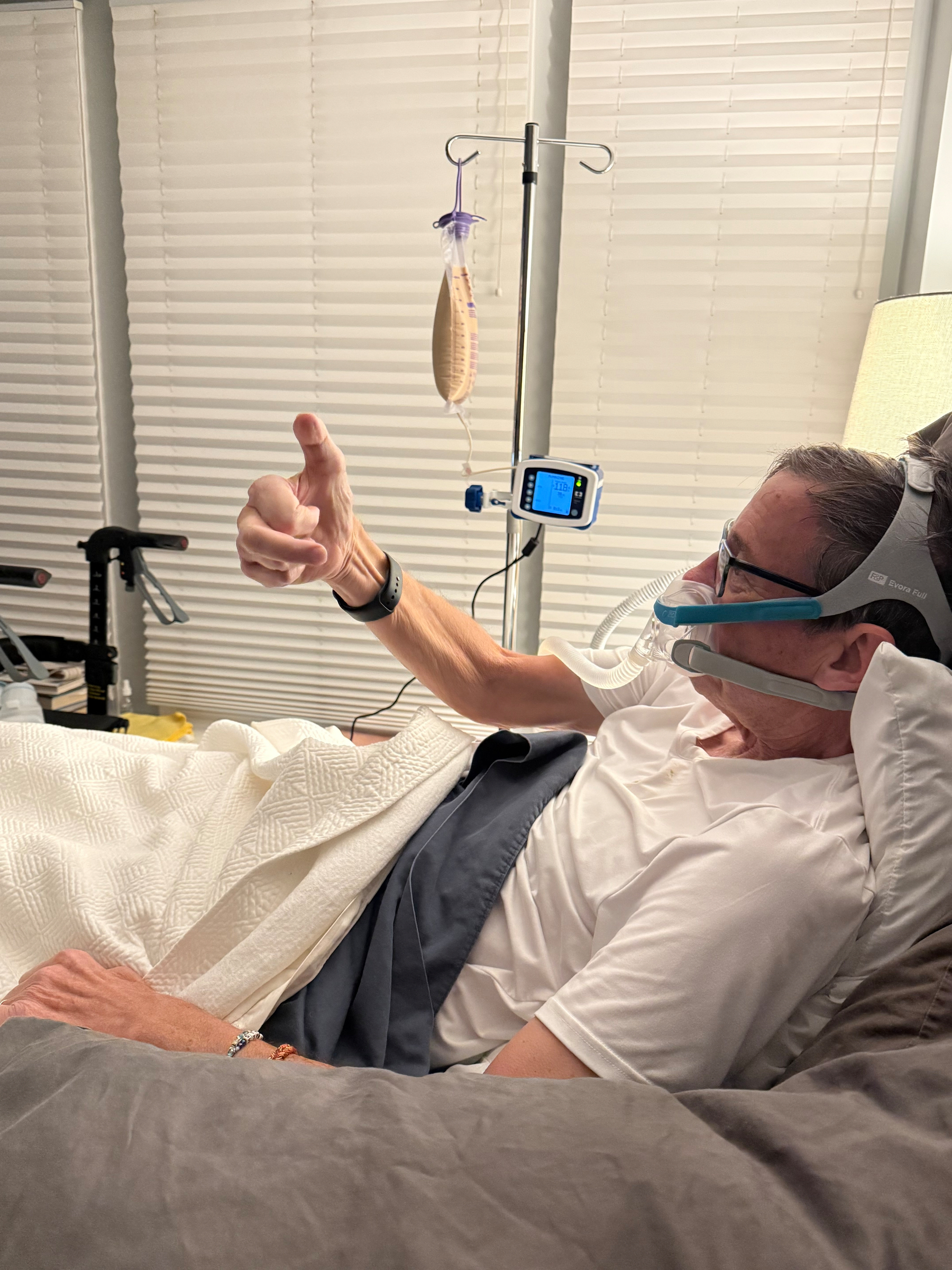 By 7:00 p.m., I was upstairs getting connected: respirator, pump, hoses, mask, lines—the whole setup. The room was starting to look like a cross between a hospital suite or a nursing home. I skipped my normal bedtime reading and decided to try sleeping before anything beeped. And surprisingly—I slept pretty well. One bathroom break. Not an issue.