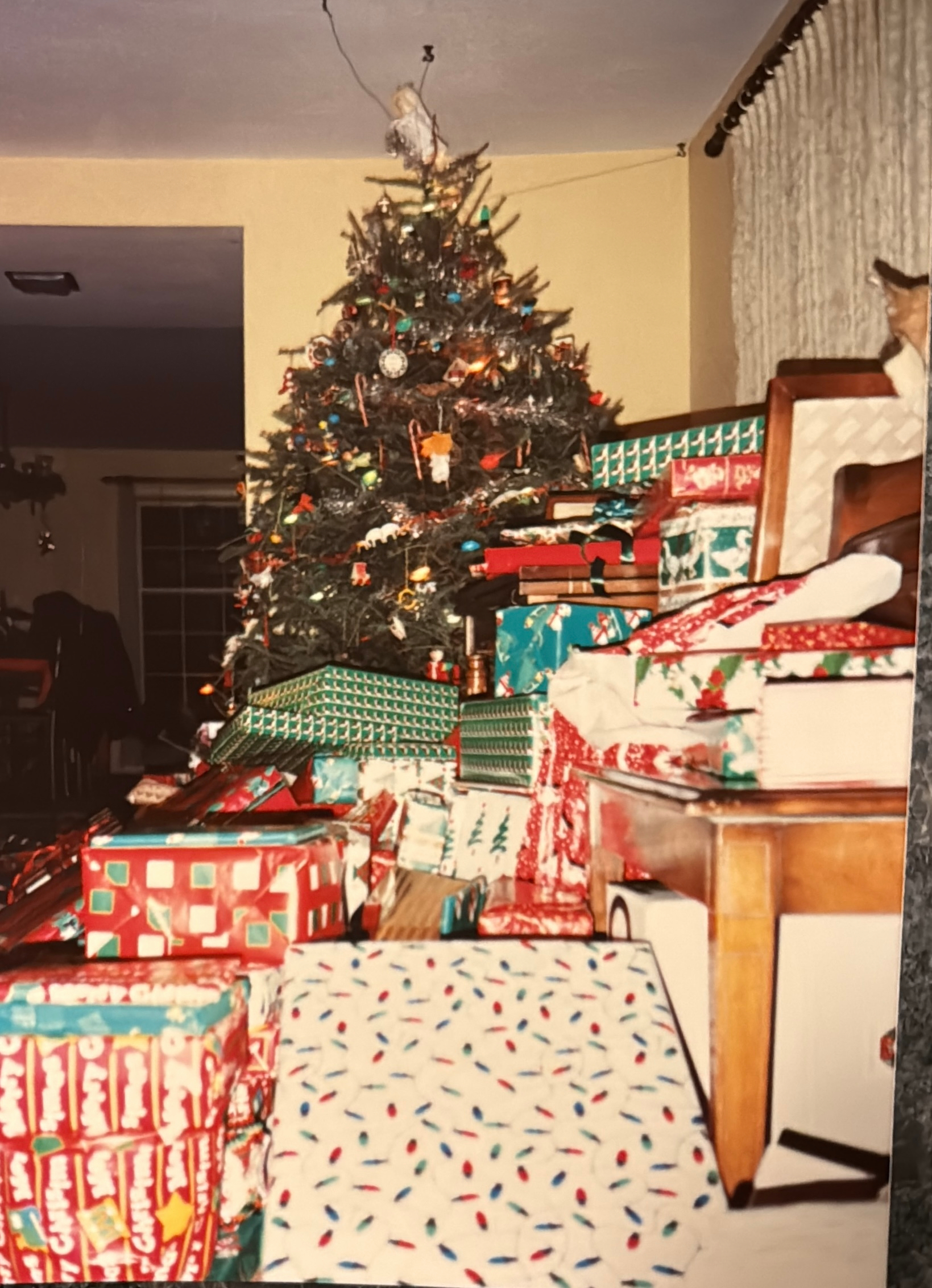 We were a one-present-at-a-time family. Imagine ten people opening gifts… one by one… all morning long. Some siblings were the “careful unwrap” type—slowly peeling tape, trying to preserve the wrapping paper like it was a family heirloom. Torture.