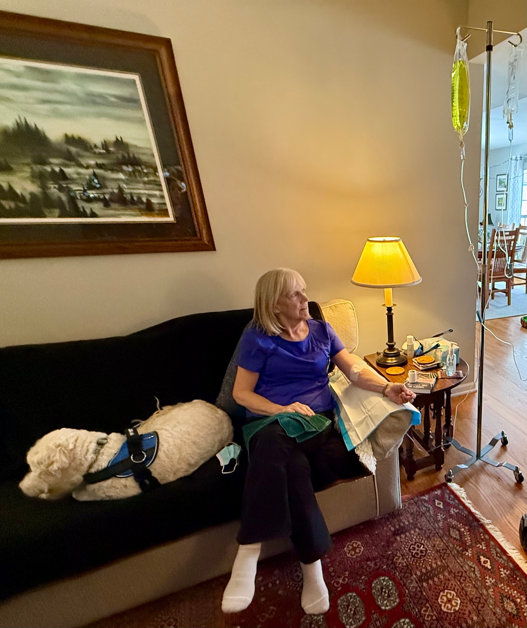 Photos and IV cocktails courtesy of Nurse Kim. Thank you for the immunity boost. Cindy had the comfort dog to calm her.