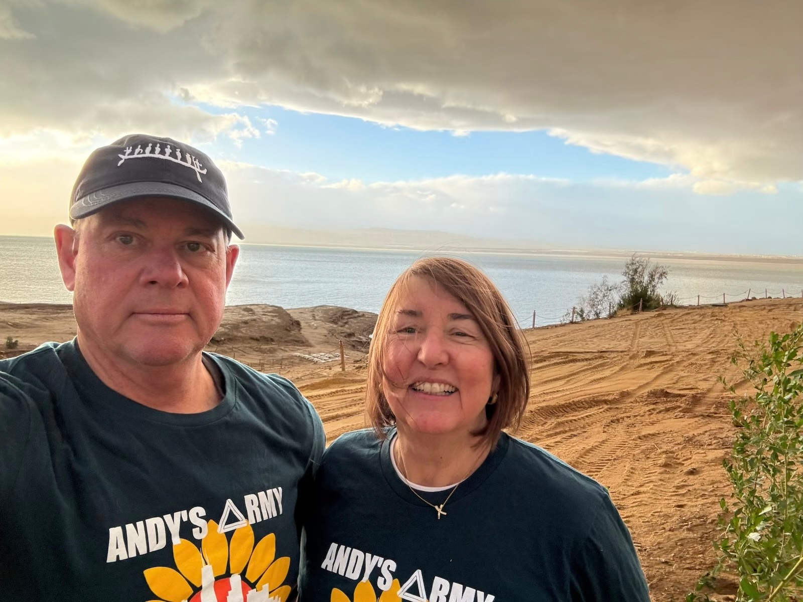 My sister Lis and her husband Steve are in the Middle East and they brought their AA shirts.