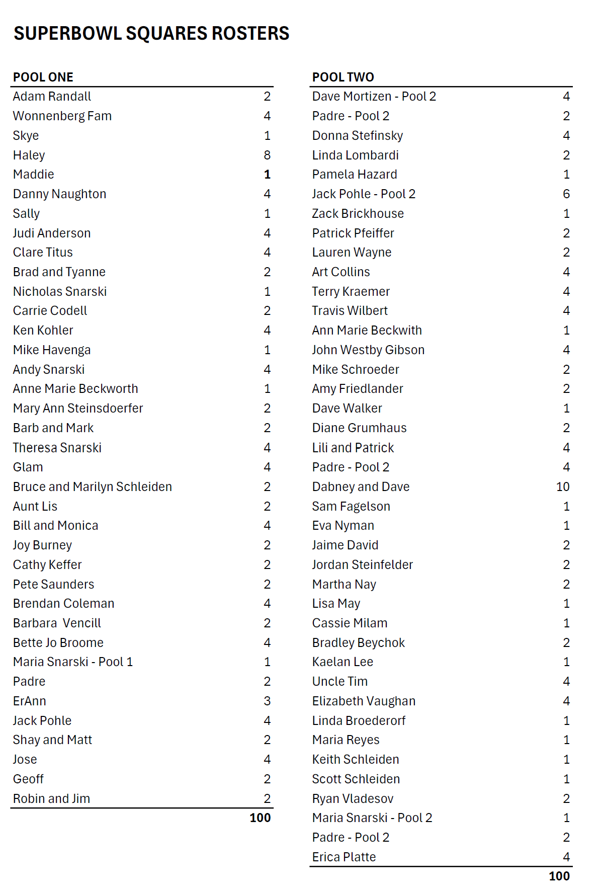 Pool #2 had no changes.