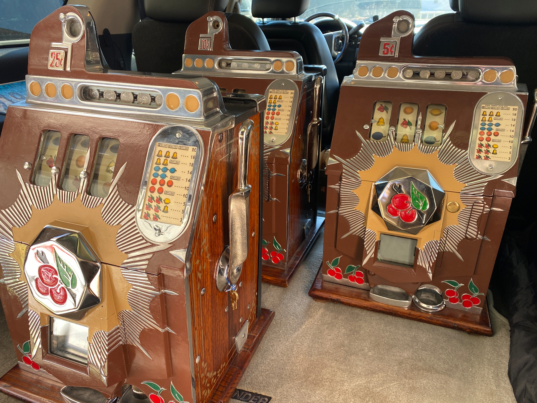 Over the next few months, I found the matching dime and quarter models to the set. There’s a penny machine that belongs with them, but I’ve never seen one — which is probably a good thing. We don’t have the room, and I’m sure it would come with a price tag worthy of Las Vegas.
