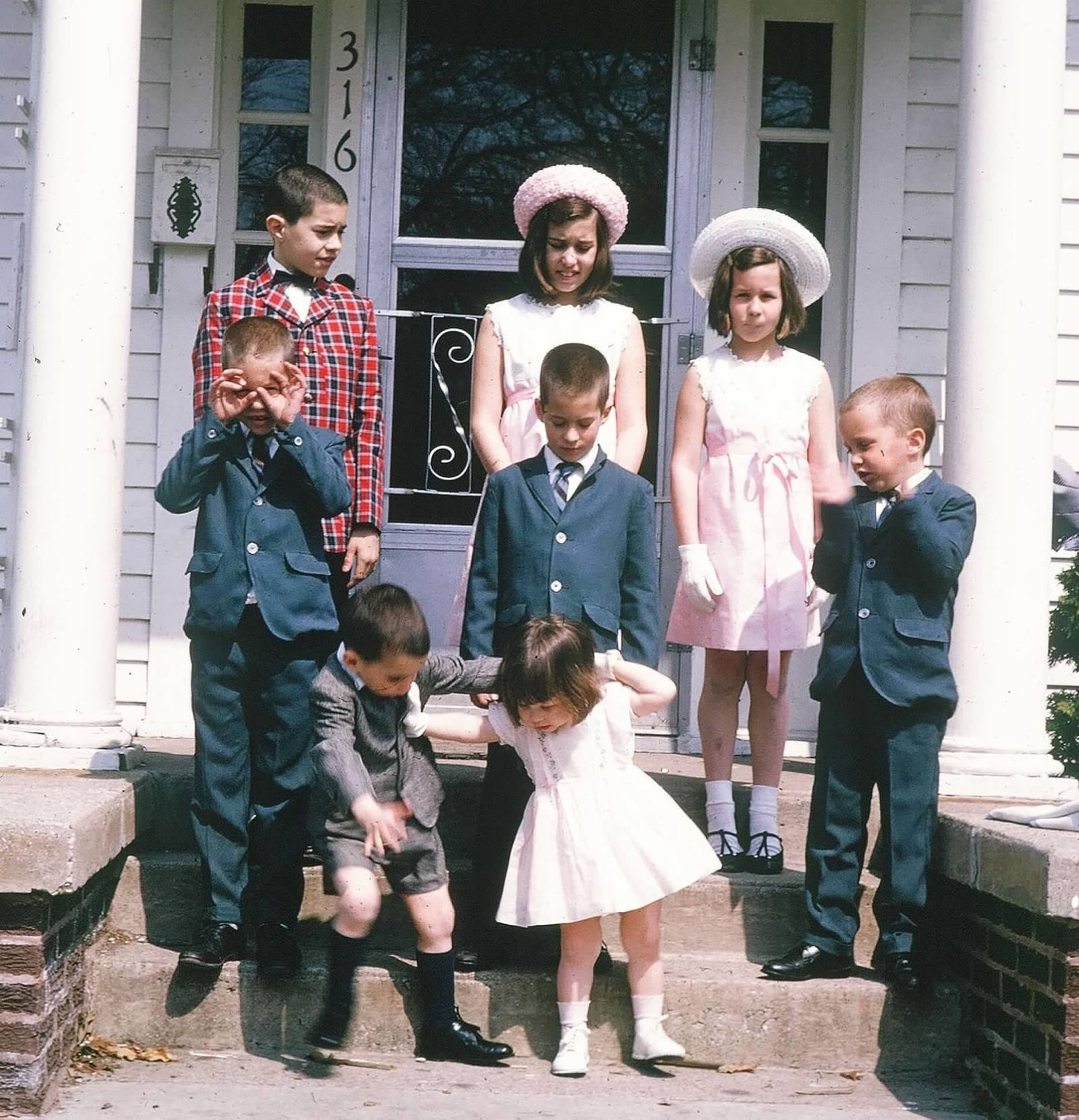 In our grade school years, we made a special effort on the big holidays that mattered most to my parents—Easter, Mother’s Day, Christmas. Those were dress-up Sundays. Shined shoes. Pressed clothes. Dress jackets. Combed hair. In those early years, we could all squeeze into the station wagon for the one-mile drive to church. We’d arrive early enough to claim our usual spot: the second pew, directly facing the lectern. In some years there was enough time to snap a photo before piling into the car.